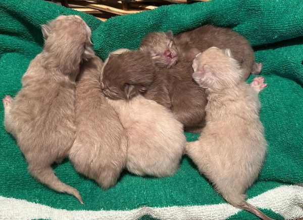 Kittens will be blue or seal traditional (blue eyed) patterns will be pointed, mitted or bicolor (masked)